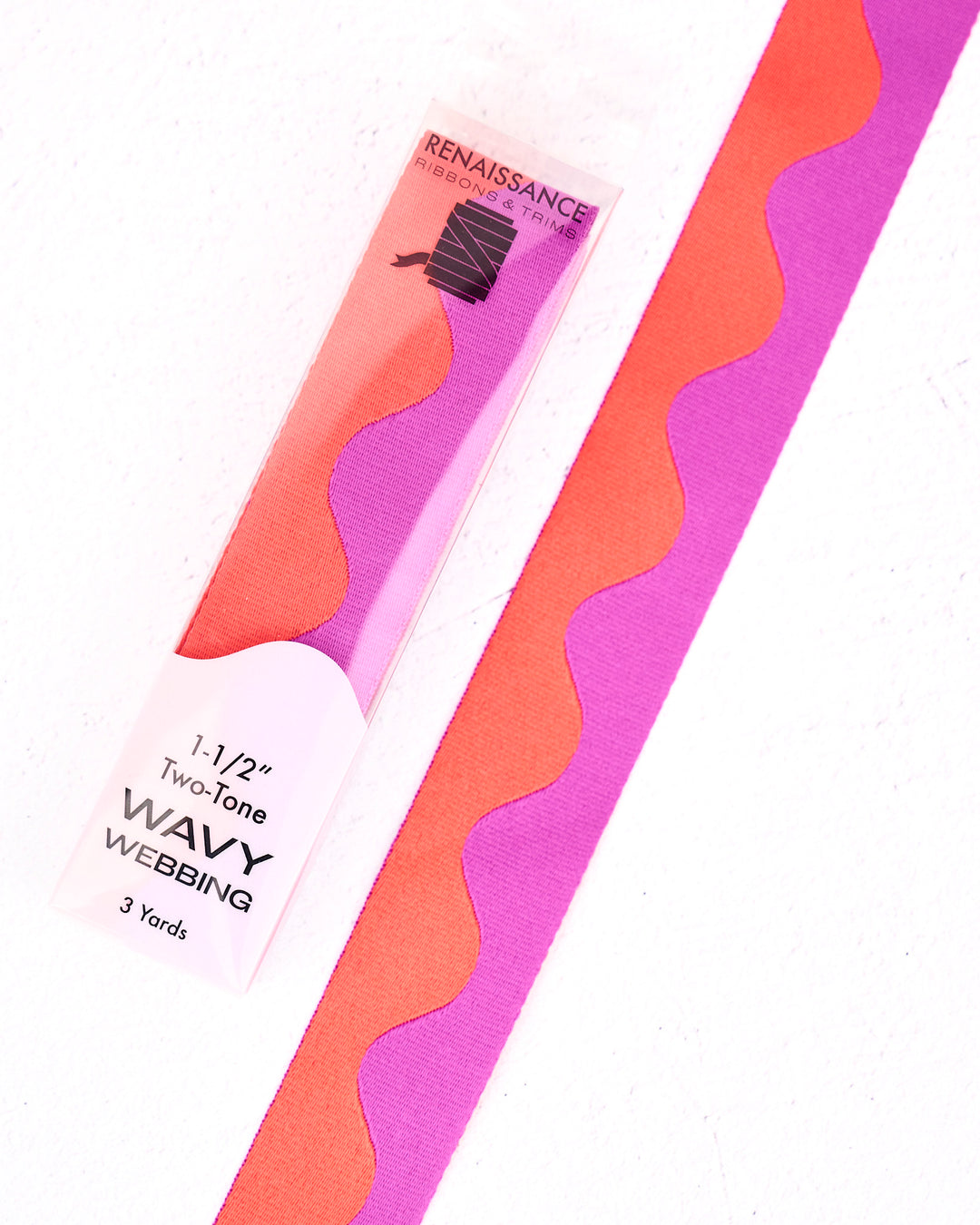 Wavy Webbing in Dragonfruit - 1-1/2" width - by Renaissance Ribbons - 3 YD PACK