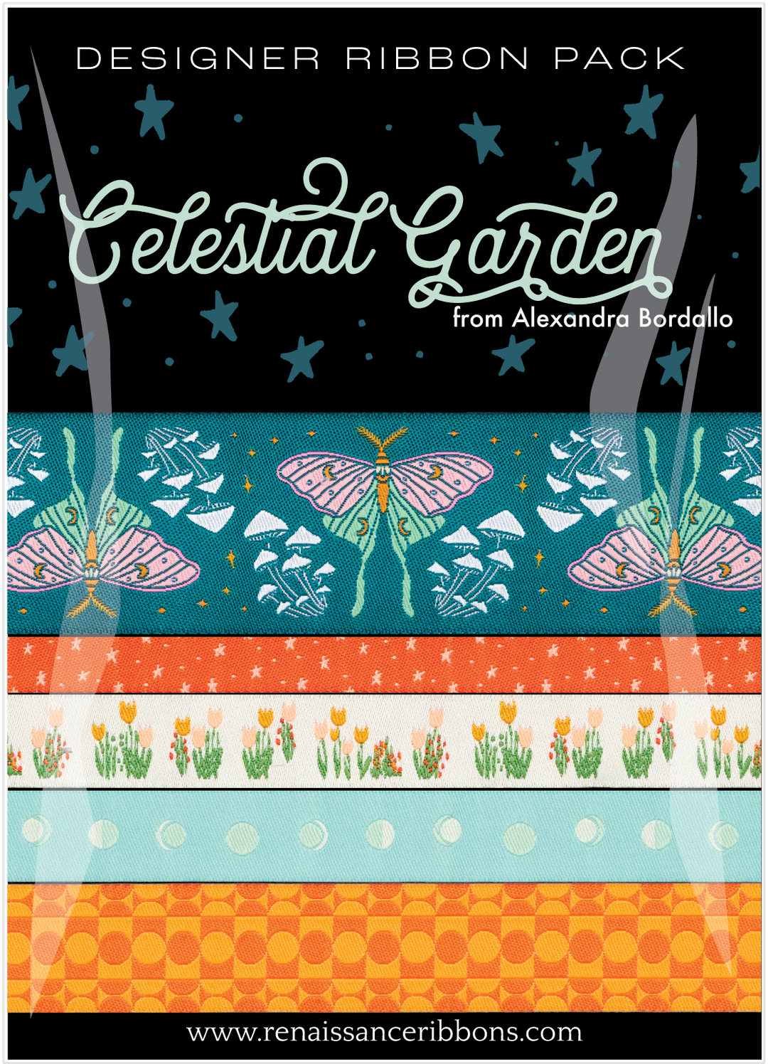 Celestial Garden - Moonlit Moth - 1-1/2" width - by Alexandra Bordallo - One Yard