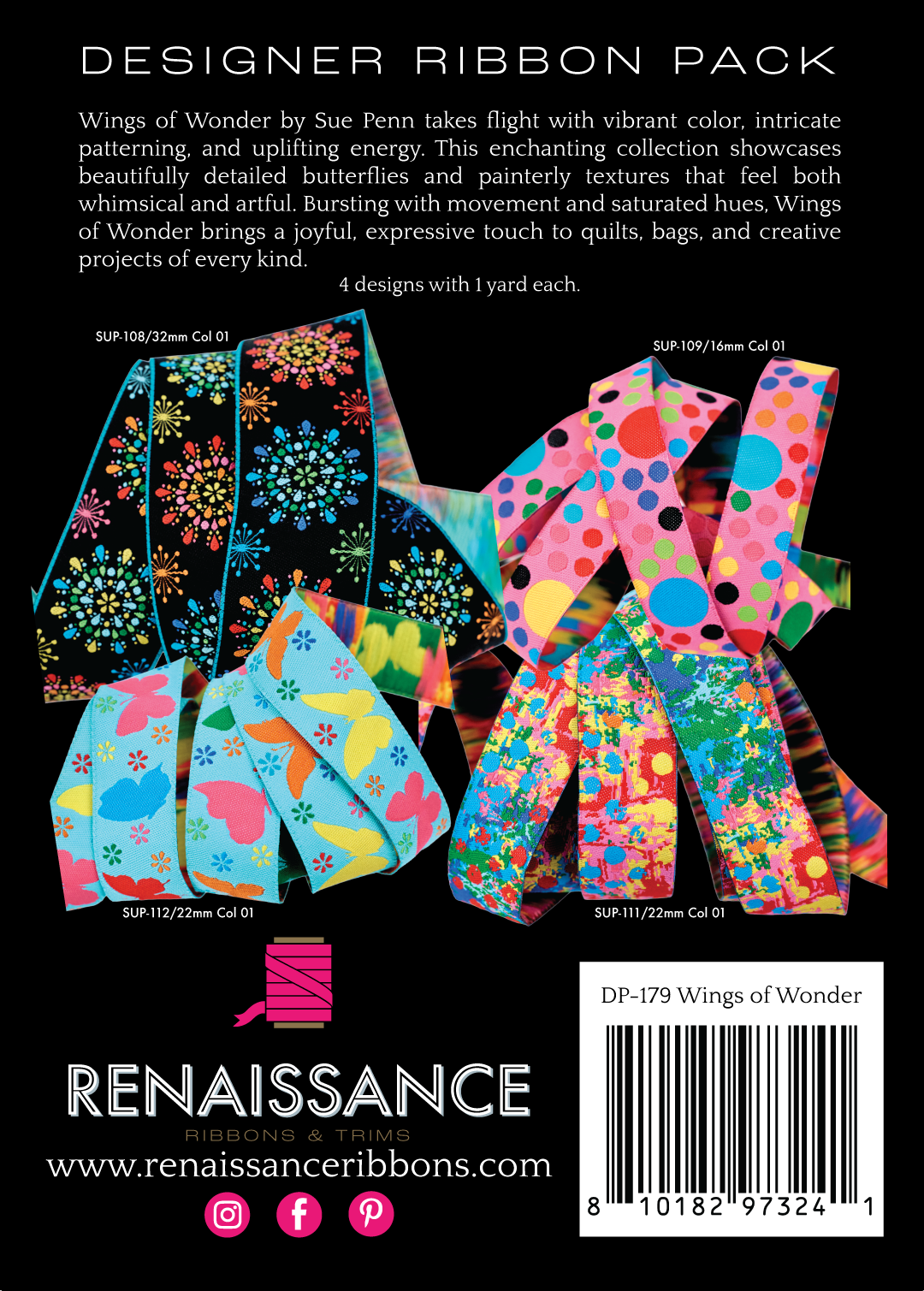 Wings of Wonder by Sue Penn takes flight with vibrant color, intricate patterning, and uplifting energy. This enchanting collection showcases beautifully detailed butterflies and painterly textures that feel both whimsical and artful. Bursting with movement and saturated hues, Wings of Wonder brings a joyful, expressive touch to quilts, bags, and creative projects of every kind.