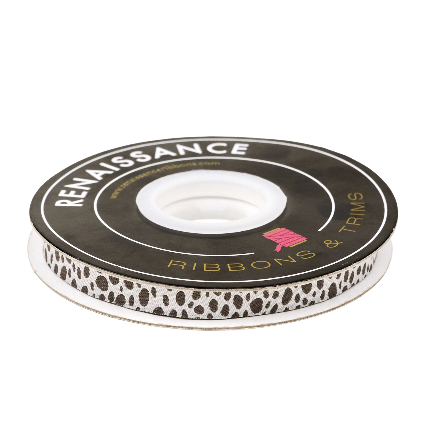 This 3/8" wide ribbon features playful dark brown spots on a creamy white background, perfect for adding a subtle boho touch to your projects. Its petite width makes it ideal for layering, quilting, or adding delicate accents to bags, bows, and home décor. Part of the Montana Bloom collection by Cate and Rainn.