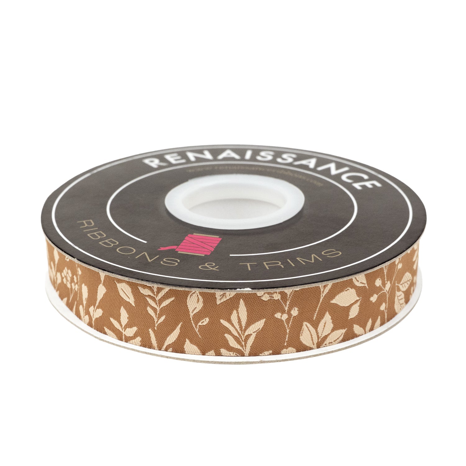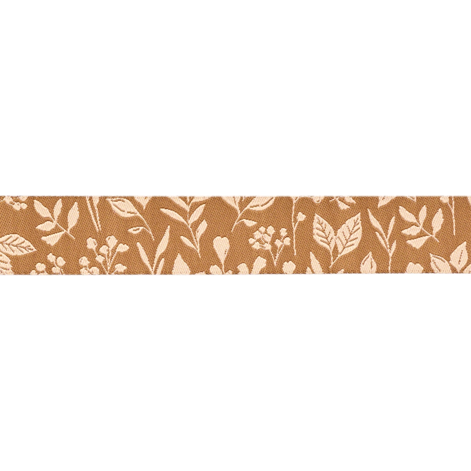 This 7/8" wide reversible ribbon glows with a warm, dusty orange hue accented by delicate sprigs and leaves. Its two-color design offers flexibility and charm, bringing a touch of rustic, boho-inspired style to quilts, bags, and creative projects. Part of the Montana Bloom collection by Cate and Rainn.