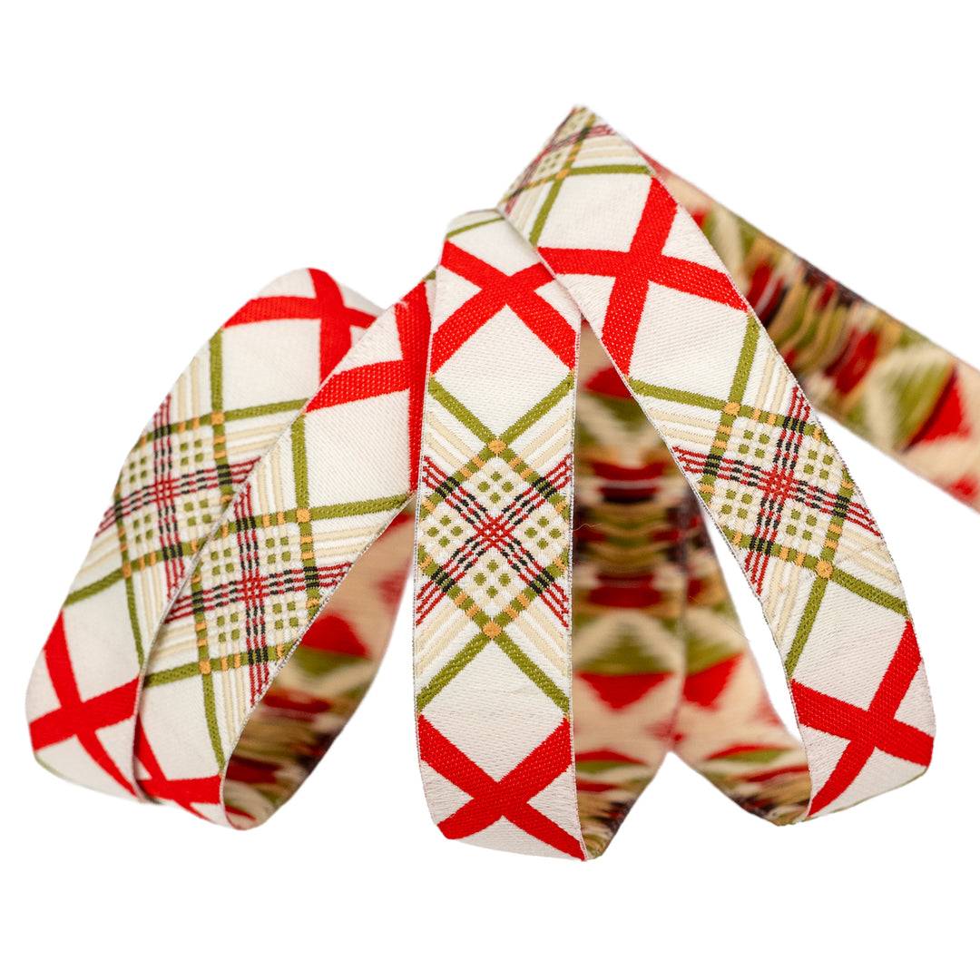 Mistletoe and Holly - Winter Plaid - 5/8" width - by Beverly McCullough - One Yard